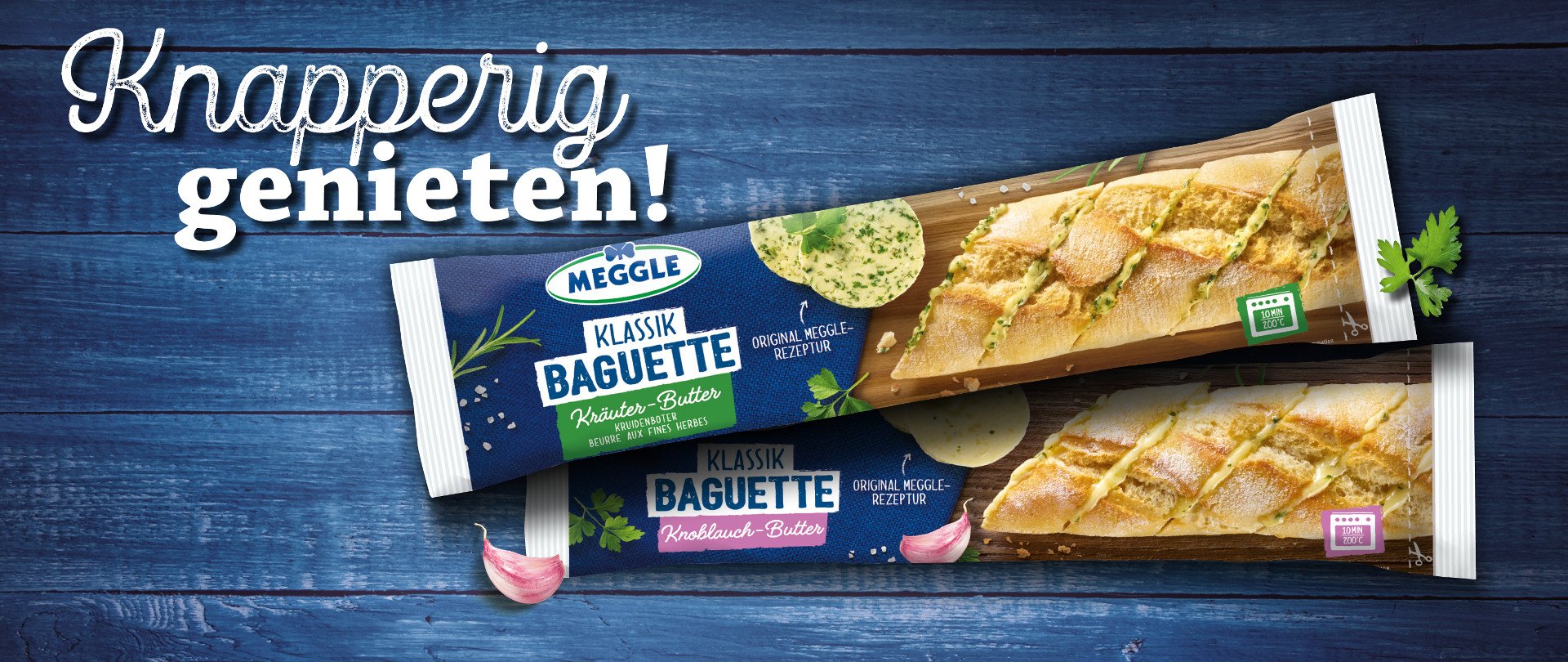 De MEGGLE baguettes zijn verkrijgbaar in de soorten kruidenboter en knoflookboter – de klassiekers in het MEGGLE baguetteassortiment. Aan de buitenzijde krokant, aan de binnenzijde licht, luchtig en sappig gevuld met fijn gekruide MEGGLE boterspecialiteiten zijn de baguettes een populair bijgerecht bij de meest uiteenlopende gerechten. Ovenvers afgebakken zijn ze niet alleen een must bij een barbecue, maar ook als bijgerecht bij populaire zomergerechten zoals tomaat & mozzarella of lekkere zomerslaatjes.